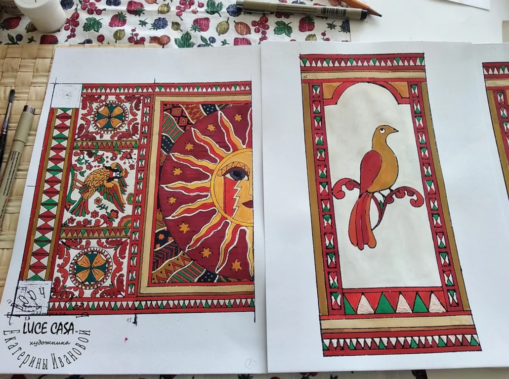Роспись обеденного стола в русском стиле с элементами эклектики